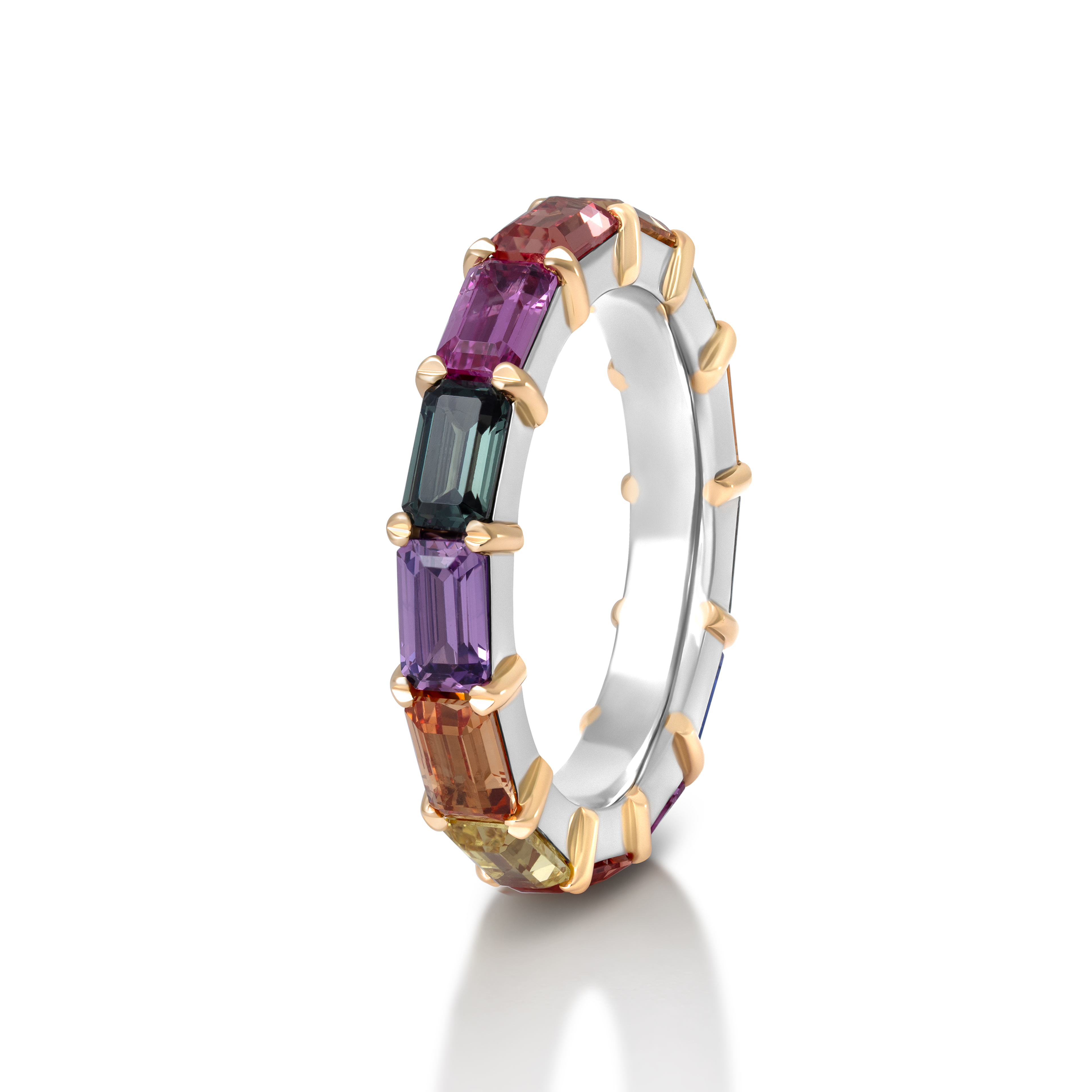 Elegantiškojo emerald pjūvio safyrai, meistriškai paguldyti baltame aukse ir sutvirtinti geltono aukso stuburu. Išskirtinis kūrinys išskirtinėms moterims!