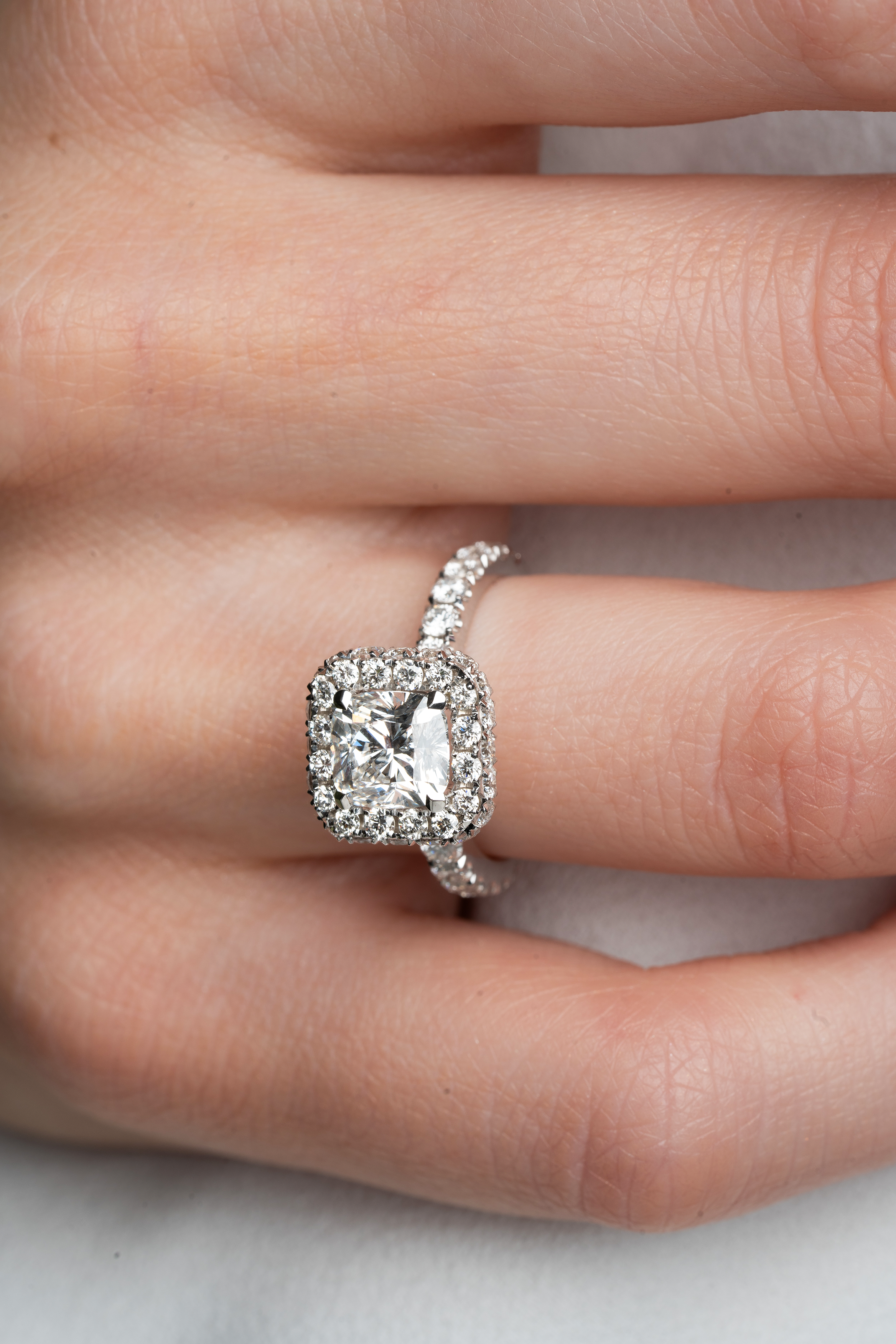 Halo stiliaus žiedas su cushion formos deimantu ∼ 2,6 ct