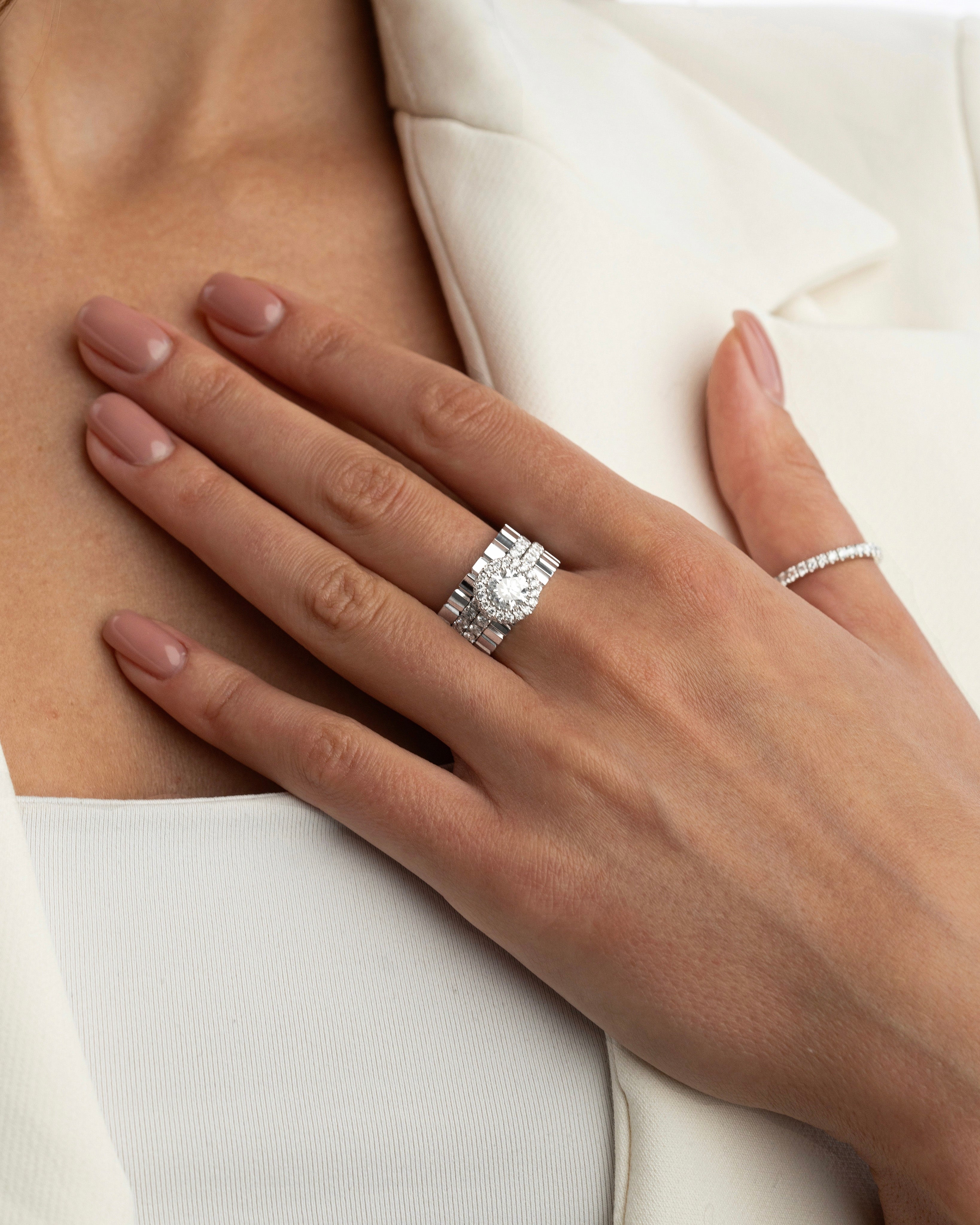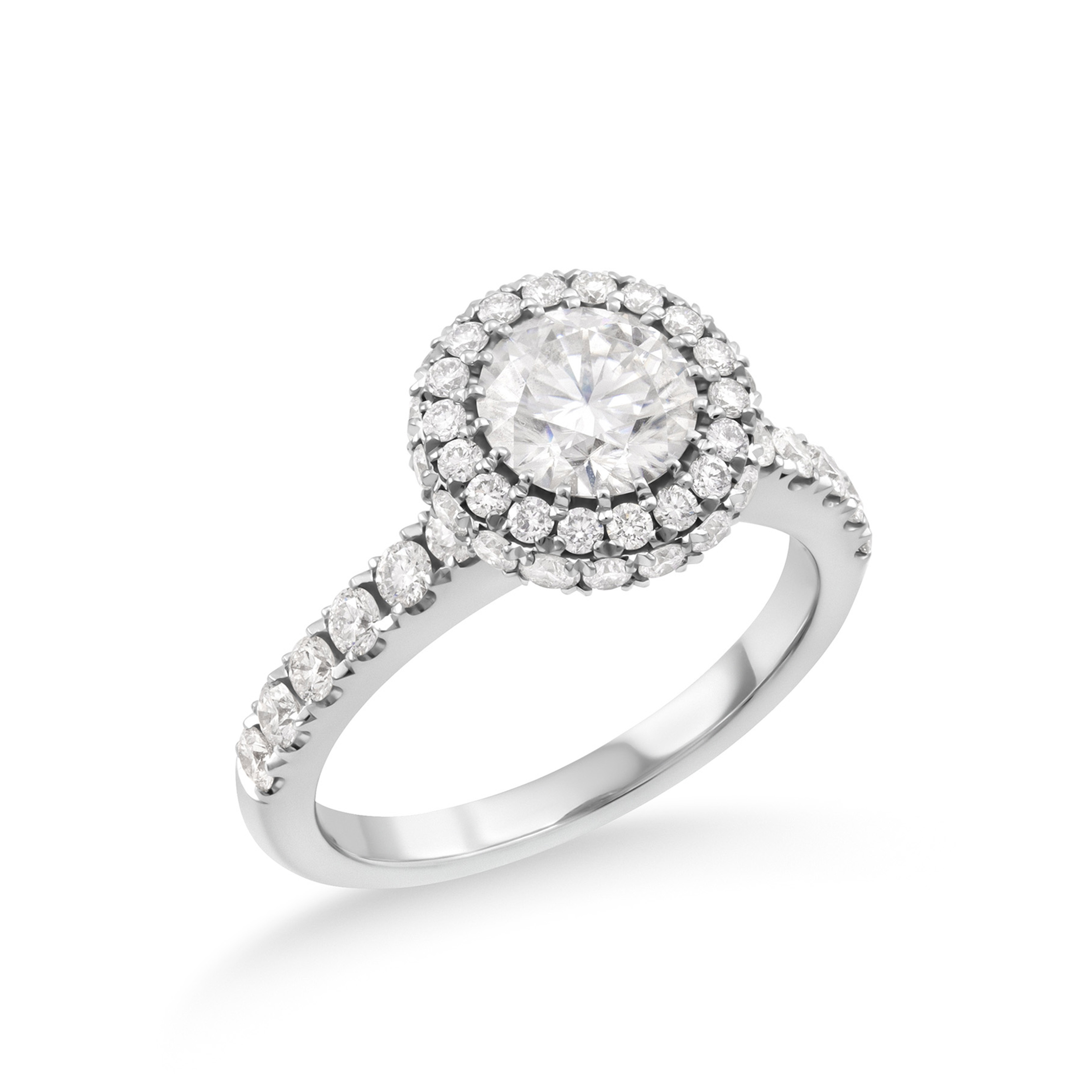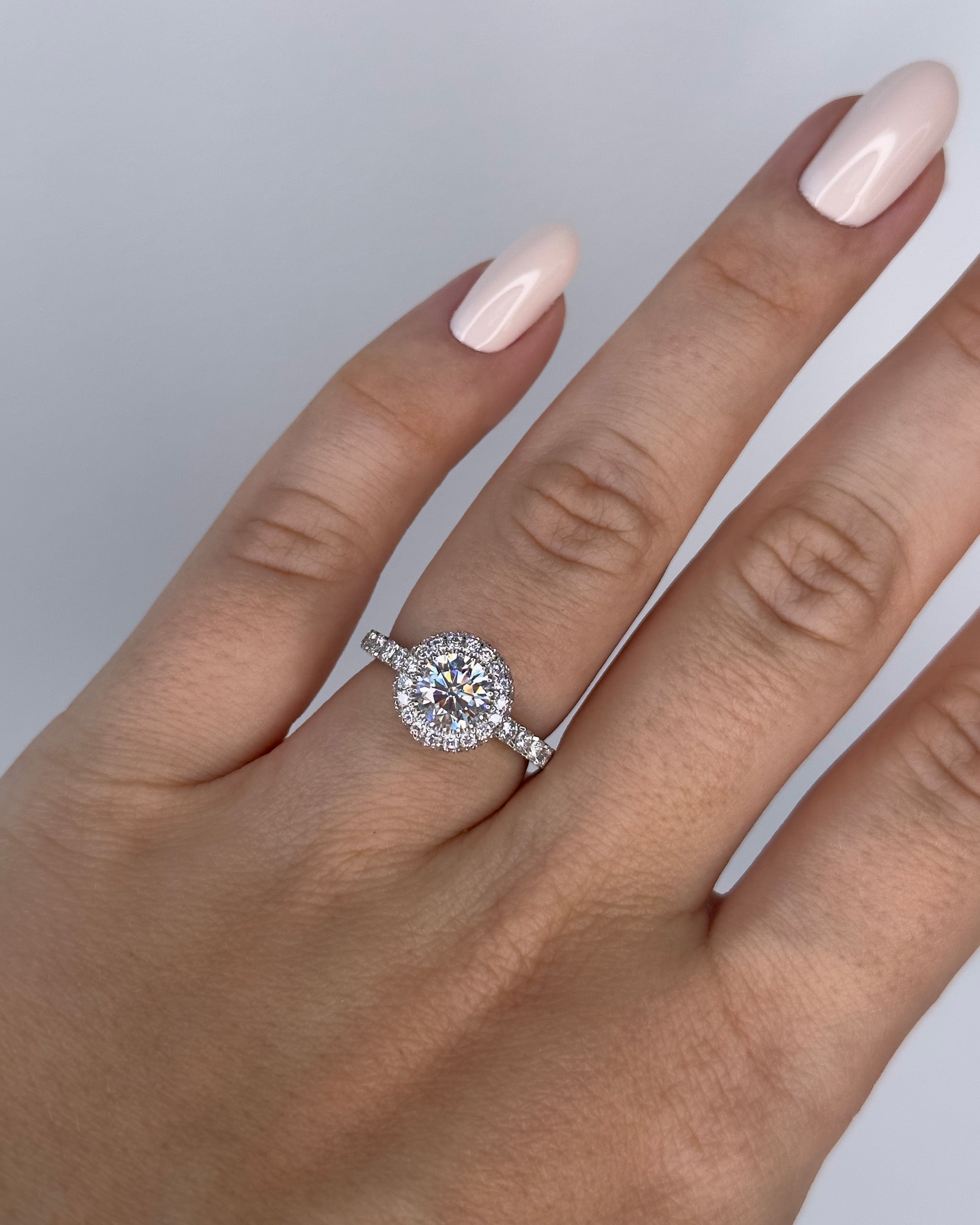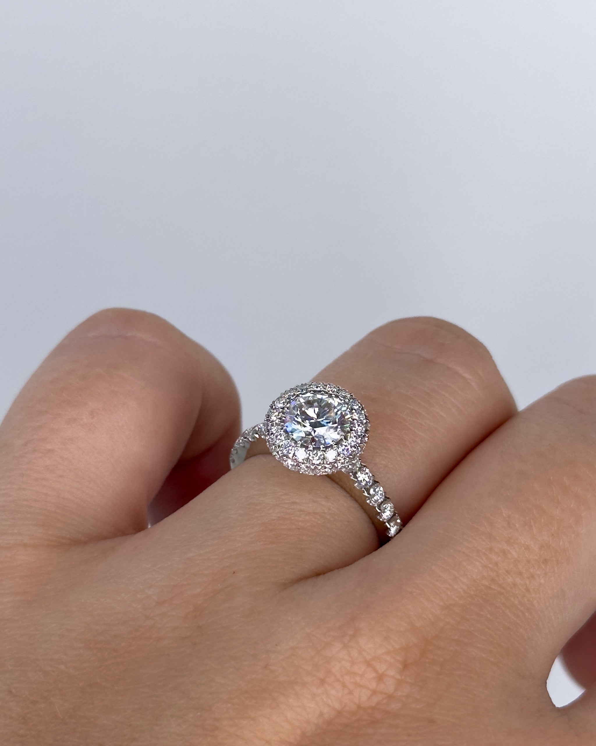 Žiedas, tapęs BELLURI kūrybos klasika - 1 ct centrinis deimantas apjuostas spindinčiu halo efektu. Šis rankų darbo žiedas yra aukšto profilio, todėl prie jo galėsite derinti kitus žiedus ir kurti savo asmeninius, prabangius ir elegantiškus derinius.