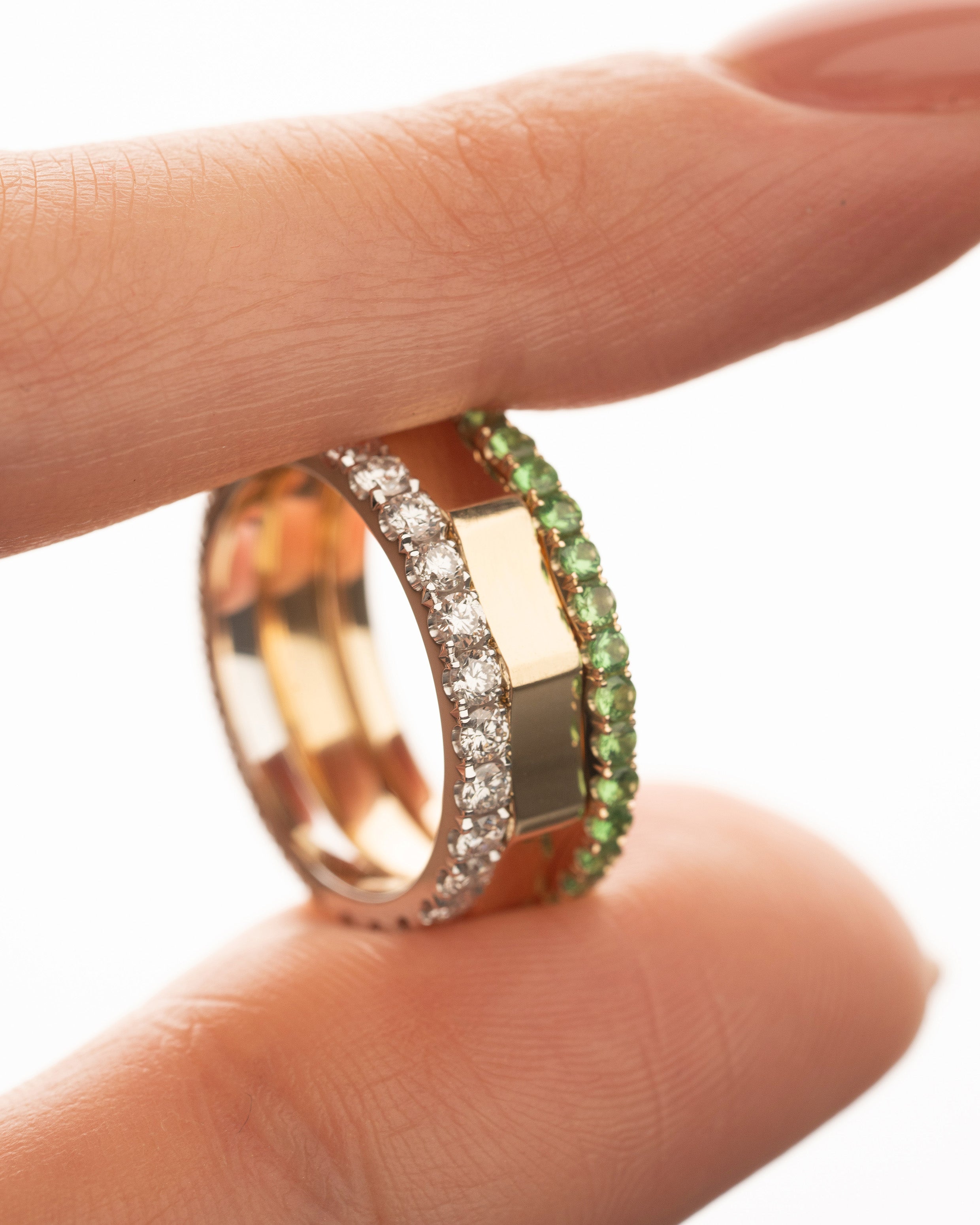 team adores creativity and wants to share this joy with others, so we offer the opportunity to incorporate a part of yourself into each piece of jewelry. We aim for each of our creations to become the best expression of your personal style and individuality, so if desired, all silver jewelry can be made from 14 K yellow, white, and rose gold. Colored stones can be replaced with natural or lab-grown diamonds, and conversely, diamonds can be changed to colored stones of your choice. The metal surface can be chosen as shiny or matte. Allow yourself to be a part of the creative process and enjoy a unique piece of jewelry calibrated just for you!