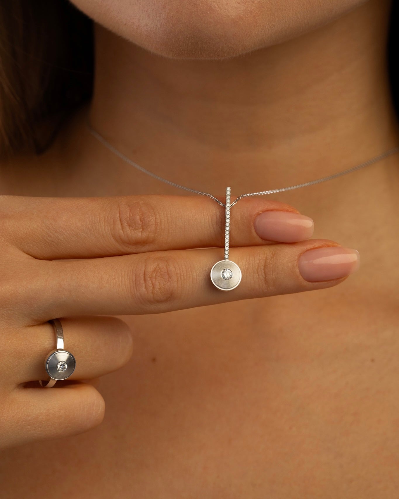 Tai daugiau nei papuošalas – tai išraiška asmenybės, drąsos ir stiliaus. Pagamintas iš aukščiausios kokybės tauriųjų metalų ir puoštas meistriškai įtvirtintais deimantais, jis spinduliuoja prabangą bei charakterį. Pakabukas savo geometrija primena švytuoklę, grakščiai gulančią ant dekolte zonos, o kartu su Harmony II kolekcijos žiedu ir auskarais sukurs prabangų ir vientisą juvelyrinį akcentą.
